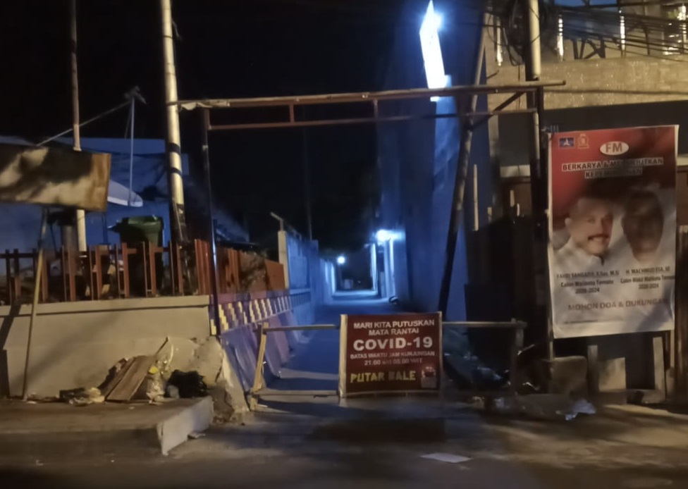 Seperti Pantauan Haliyora.com pada malam ini, Minggu (12/4) pada pukul 21. 00. Dimana terlihat, selain ruas jalan utama seperti tapak dua hingga pelabuhan Ahmad A. Yani, gang di beberapa kelurahan sepert kelurahan Toboko, Tanah Raja, dan Kalumpang juga sudah ditutup warga pada pukul 21.00.
