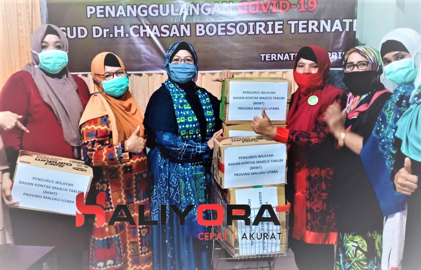 Pengurus wilayah Badan Kontak Majiles Taklim (PW-BKMT) Malut memberikan bantuan secara langsung kepada Tim Medis Penanganan Covid-19 Rumah Sakit Umum Daerah Chasan Boesorie Ternate.