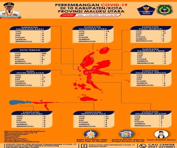Gugus Tugas Percepatan Penanganan Covid-19 Maluku Utara Kembali melaporkan perkembangan penyebaran kasus pasien Covid-19/Rabu (13/05/2020)