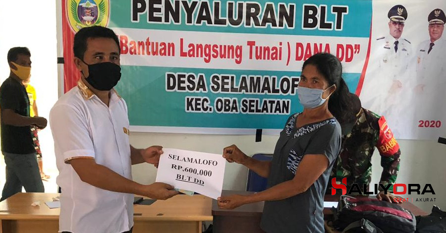 Penyaluran Bantuan Langsung Tunai (BLT) oleh Pemerintah Desa Selamalofo kecamata Kepada Warga Selamalofo. Kecamatan Oba Selatan Kota Tidore Kepulauan (Tikep). Kamis, (14/5/2020)