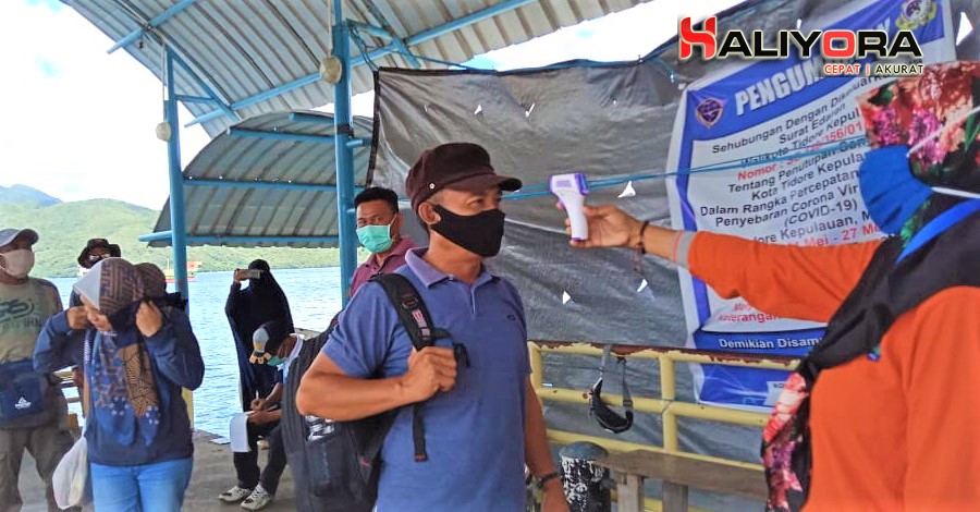 Sementra Pengawas Tim Satgas Posko Pelabuhan Semut yang enggan disebut namnya kepada Haliyora.com menuturkan setiap masyarakat yang datang dari luar Ternate diharuskan menggunakan masker.