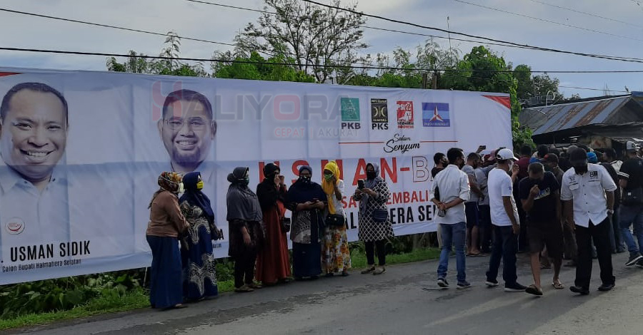 Pasangan Calon (Paslon) Bupati dan Wakil Bupati Usman Sidik dan Hasan Ali Basam Kasuba melakukan launcing Partai Koalisi menjemput Pemilukada Kabupaten Halmahera Selatan (Halsel) Desember 2020.