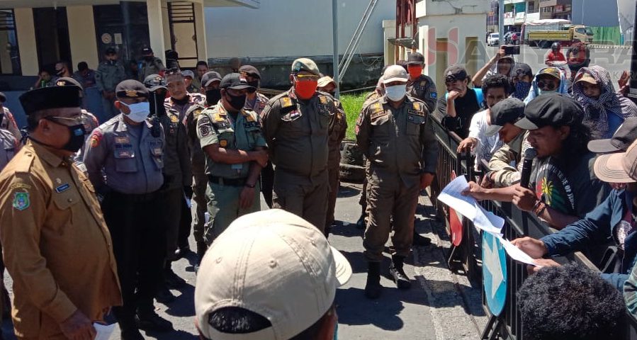 Sejumlah mahasiswa yang tergabung dalam Aliansi Pusat Studi Mahasiswa Ternate (Pusmat) melakukan aksi di depan kantor Walikota Ternate.