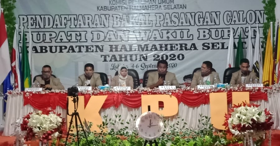 Tanpa kadidat Bupati incumbent Bahrain Kasuba, kandidat Wakil Bupati pasangan Bahrain, Muchlis Sangaji mendatangi kantor KPU Halsel jelang ditutupnya pendaftaran Calon Kepala Daerah/Wakil Kepala Daerah, Minggu (06/09).