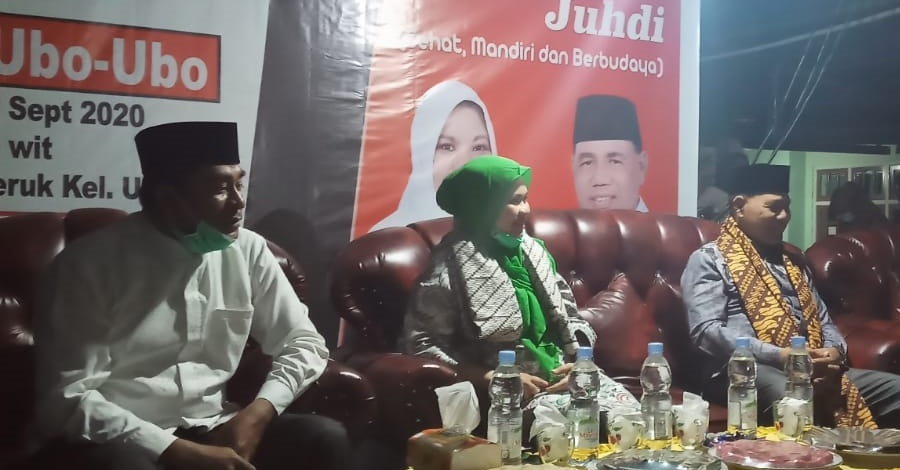 Sebagai bentuk dukungan, siri kapur serta Kain Batik dipersembahkan oleh ibu-ibu Kelurahan Ubo-ubo menyambut Calon Walikota perempuan satu-satunya itu.