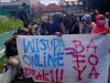 Berkampanye di malam hari, Usman-Bassam disambut warga desa Kampong Makian dengan pengalungan bunga serta iringan musik togal saat tiba di lokasi kampanye.