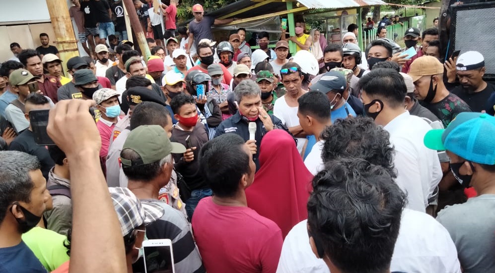 Ratusan warga Kelurahan Fitu, Kota Ternate Selatan melakukan aksi demo dengan menutup akses jalan menuju kampus Unkhair II, Muhammadiyah dan Stikip, pada Rabu (25/11/2020).