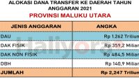 Pemerintah Propinsi Maluku Utara pada tahun 2021 mendapat dana transfer dari pemerintah pusat sebesar Rp 2.247 triliun.
