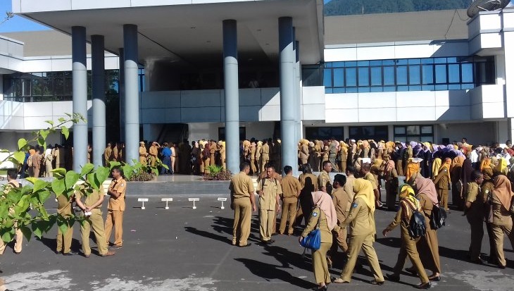 “Tadi saya minta asisten dan staf ahli buat SK, kita rancang pemberhentian PTT, ini karena keuangan daerah tidak mampu lagi bayar honor PTT, ini langkah efisiensi,” ujar Hasyim.