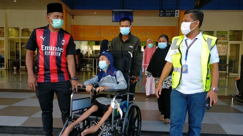 Bocah asal Halmahera Selatan yang menderita kelumpuhan, akhirnya tiba di Kota Ternate setelah melewati tahapan pengobatan di Jakarta.