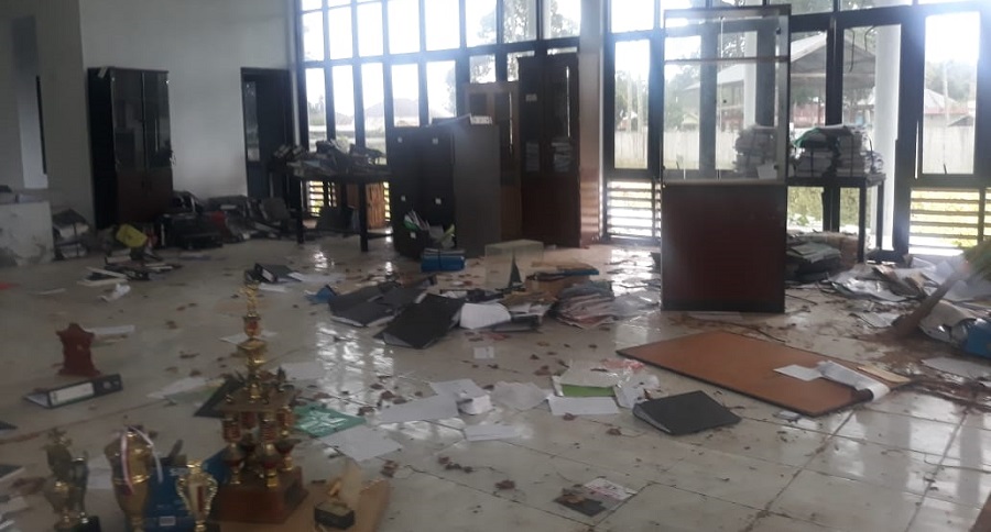 Beberapa bagian bangunan dan fasilitas kantor juga terlihat seperti tak terurus. Aula kantor nampak seperti pembuangan berkas-berkas kantor.