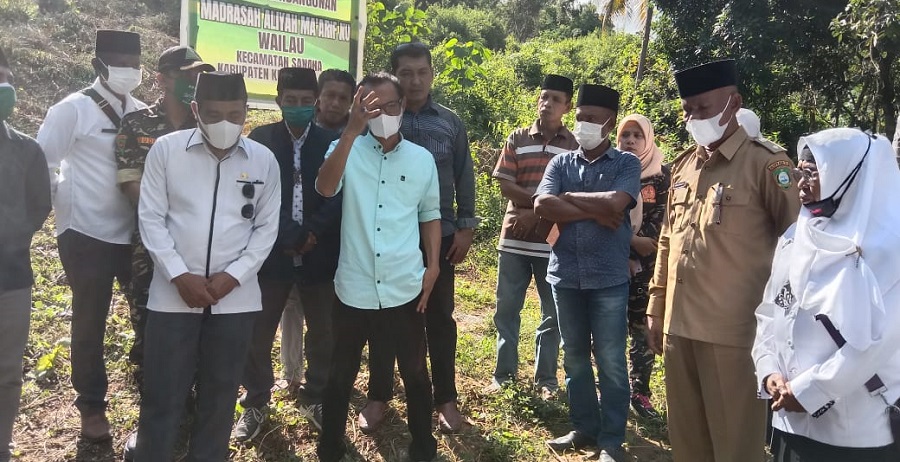 Sanana, Maluku Utara- Anggota Komisi IV DPRD Provinsi Maluku Utara, Abdul Malik Silia menghadiri acara peletakan batu pertama Madrasah Aliyah (MA) Ma’Arif NU di Desa Wailau, Kecamatan Sanana, Kepulauan Sula, Maluku Utara, Senin (26/7).
