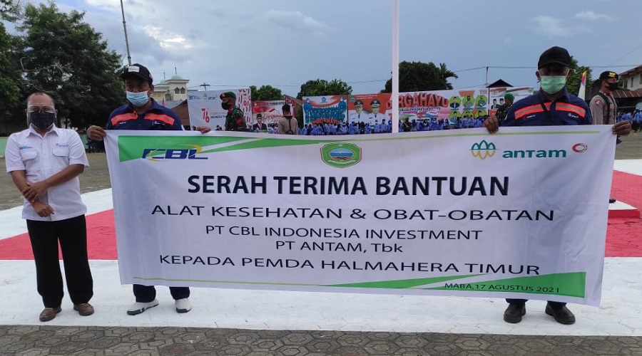 Maba, Maluku Utara- Dalam rangka mendukung penanganan Covid-19 di Maluku Utara. Pada momen perayaan HUT RI ke 76 ini, PT. Antam bekerjasama dengan PT. CBL Indonesia Investment memberikan bantuan alat Kesehatan (Alkse) dan obat-obatan kepada Pemerintah Daerah Kabupaten Halmahera Timur (Haltim) dan RSUD Chasan Boesorie Ternate.