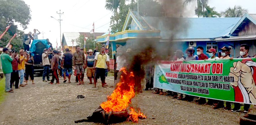Kahfi mengatakan, masyarakat Obi bereaksi melakukan demonstrasi hari ini demi menghadang upaya pencegahan kegiatan pembangunan jalan lingkar Pulau Obi oleh PT. Harita melalui PT. Trimegah Bangun Persada (TBP) yang mengusulkan pemindahan ruas jalan lingkar Obi yang ditetapkan JPN Malut.