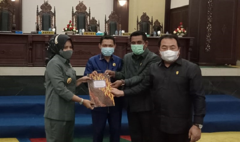 “Ranwal RPJMD ini dalam prosesnya melalui dinamika demokrasi serta secara internal dikaji dan dibahas DPRD melalui Bapemperda. Beberapa catatan kritis oleh Bapemperda untuk perbaikan dan penyempurnaan dokumen RPJMD ini telah diakomodir, sehingga akhirnya pada hari ini disahkan. Untuk itu saya ucapkan terima kasih kepada semua pihak terutama DPRD. Saya juga sangat mengapresasi kerja-kerja tim Pemda yang telah bekerja keras menyusun RPJMD ini,” tutur Bupati.