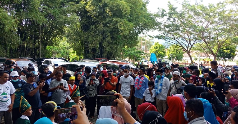Pantauan Haliyora, pukul 15.35 WIT ramai-ramai masa pendukung Ikbal Mustafa keluar dari posko pemenangan mengunakan 100 unit kendaraan roda empat (R4) dan puluhan kendaraan roda dua (R2) diiringi musik khas makayoa (manika/togal) menuju lokasi pendaftaran.