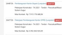 Data yang diterima Haliyora dari Layanan Pengadaan Secara Elektronik (LPSE) Kabupaten Pulau Taliabu Tahun 2021 tercatat sudah dua kali Pemda menggelontorkan anggaran dari APBD untuk penyelesaian pekerjaan proyek tersebut. Pertama sebesar Rp 3.513.261.600, dan kedua sebesar Rp 3.392.065.923, 39 sehingga total anggaran sebesar Rp 6.905.327.529.