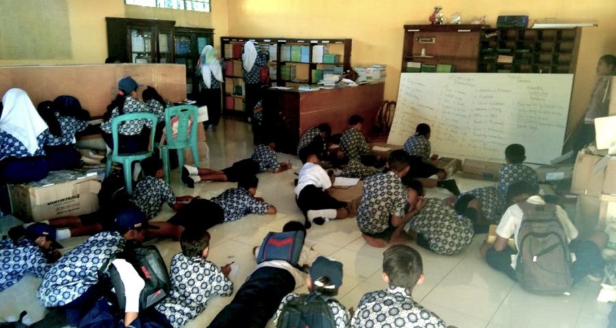 Saat ini lanjutnya, pihak sekolah mengambil kebijakan untuk membeli 20 buah meja belajar, karena merasa kasihan kepada para siswa yang belajar hanya melantai dan menggunakan dus buku sebagai meja atau tempat duduk.