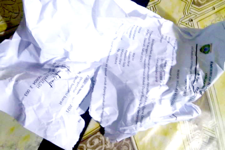 Sanana, Maluku Utara- Merasa tidak dihargai, Kepala Pemerintahan Kecamatan (Camat) Sulabesi Barat, Sumarni Temarut merobek rekomendasi pencairan Alokasi Dana Desa (ADD) untuk Desa Wai Ina Tahap 4 Tahun 2021.