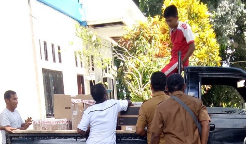“Barangnya sekarang sudah ada, tinggal saya menyelesaikan administrasinya saja, seharusnya barang ini disalurkan ke sekolah langsung, tapi sementara dititip di kantor dinas,” kata Hairil.