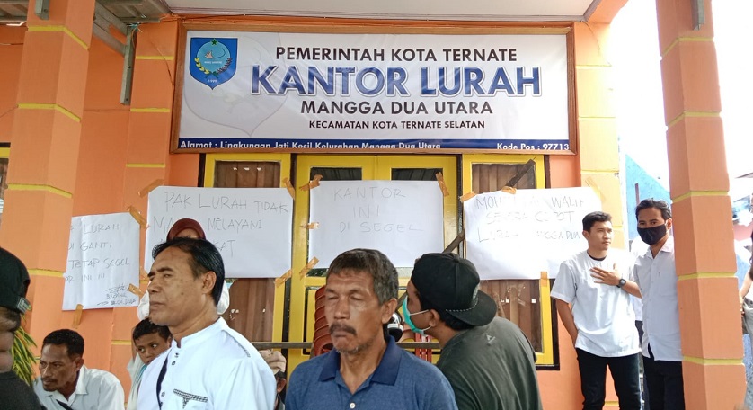 Ternate, Maluku Utara- Warga Kelurahan Mangga Dua Utara, Kecamatan Ternate Selatan Kota Ternate melakukan aksi pemalangan Kantor Lurah, Rabu (19/01/2022), sekitar pukul 12.15 WIT.