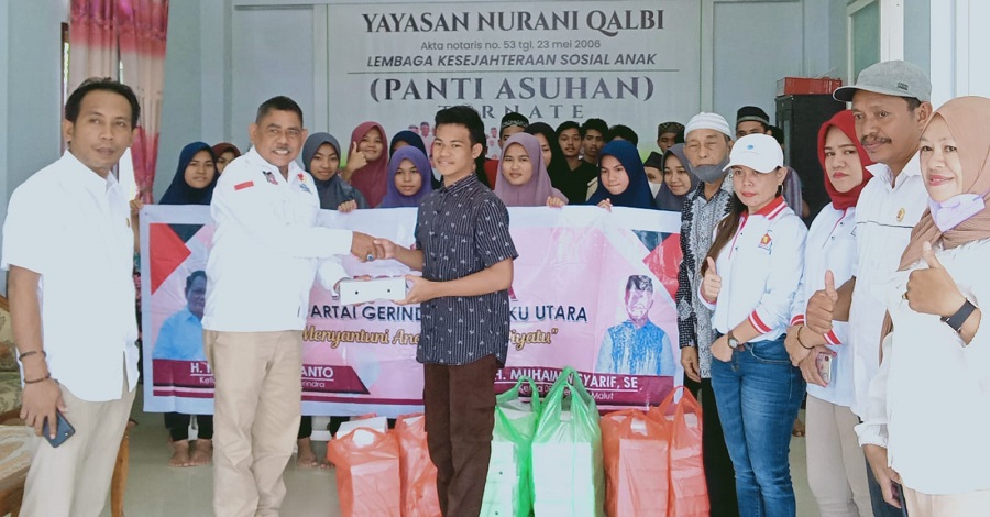 Ternate, Maluku Utara- Dewan Pimpinan Daerah Partai Gerakan Indonesia Raya (Gerindra), Provinsi Maluku Utara, melakukan kegiatan Jum’at Gerindra berbagi di setiap fakir miskin yang berada Kota Ternate. Kali ini yayasan Nurani Qalbi Kel, mangga dua menjadi tempat Jum’at berbagai DPD Gerindra