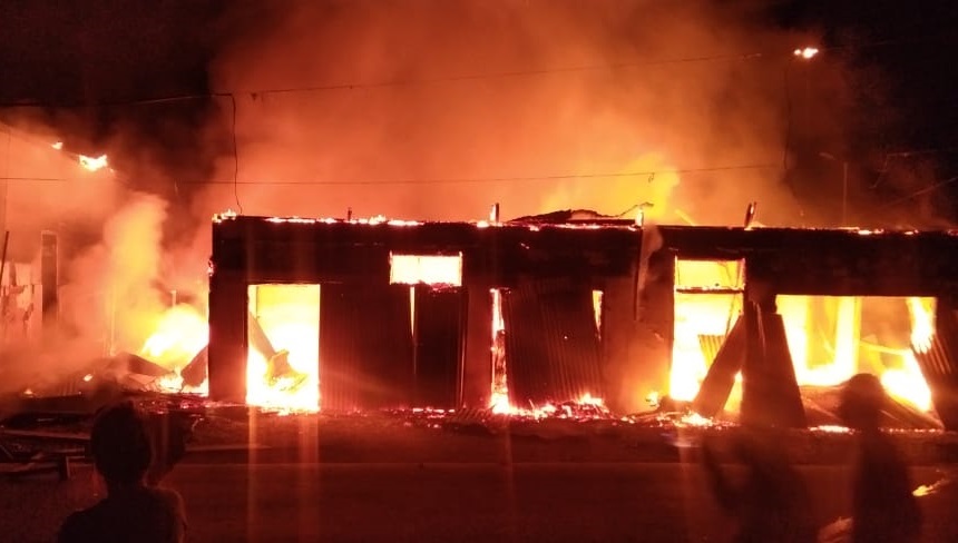 Sanana, Maluku Utara- Satu bangunan toko dan sejumlah kios sembako di Desa Fogi, Kecamatan Sanana, pada Minggu pagi (23/01/2022), dilalap api. Kebakaran tersajdi sekitar pukul 04 pagi WIT.