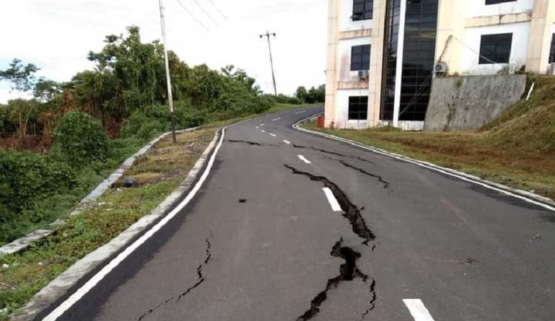 Informasi yang dihimpun Haliyora, retaknya jalan di samping kantor pemerintahan Provinsi Maluku Utara itu disebabkan guyuran hujan lebat beberapa waktu lalu mengalami keretakan kurang lebih 10 meter, kejadian tersebut baru terjadi satu minggu yang lalu saat hujan lebat mengguyur Sofifi.