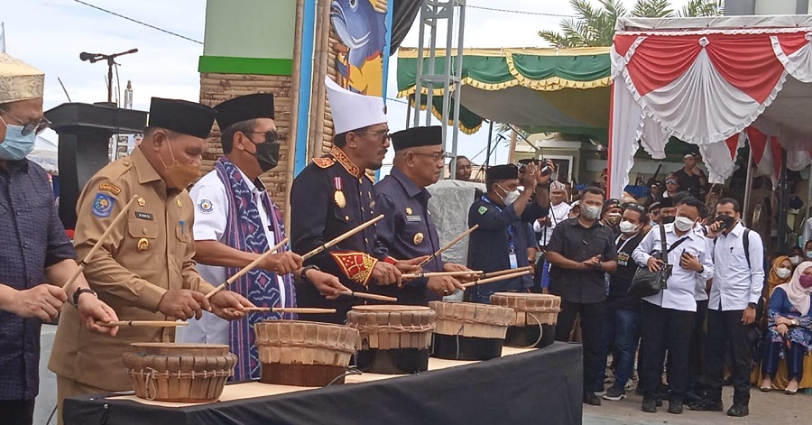 Pembukaan FKNT ditandai dengan pemukulan Tiva oleh Menteri Kelautan dan Perikanan Ir. Sakti Wahyu Tringgono M. M, didampingi Sultan Tidore.