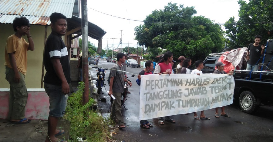Sementara Koordinator Aksi Aldrian Ishak meminta kepada pihak PT. Pertamina bertanggung jawab atas minyak yang tumpah itu.