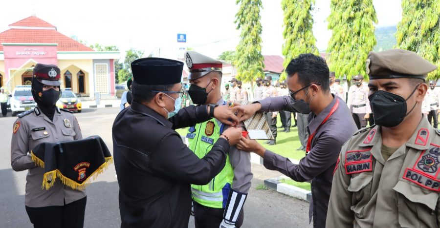 Sekda Tikep Ismail Dukomalamo yang mewakili Walikota memimpin Apel Gelar pasukan tersebut sekaligus membacakan sambutan Kapolri Drs. Listyo Sigit Prabowo.