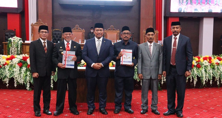 LHP LKPD Tahun 2021 diserahkan langsung anggota I BPK RI Nyoman Adhi Suryadnyana kepada Gubernur Malut KH Abdul Gani Kasuba dan Wakil Ketua IDPRD Malut Muhamad Abusama didampingi Wakil Ketua DPRD Malut Sahril Taher dan M Rahmi Husen pada rapat paripurna DPRD, , Kamis (19/05/2022).