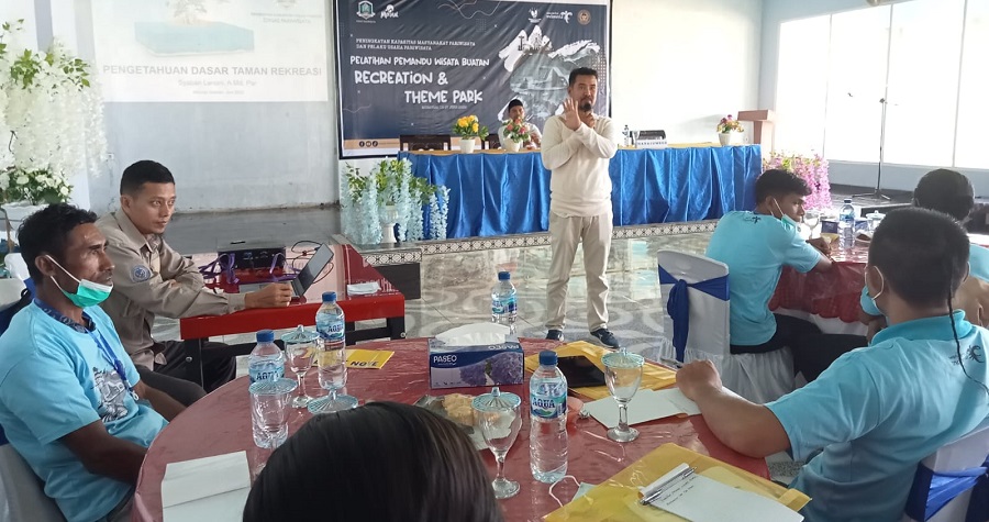 Morotai, Maluku Utara- Dalam rangka meningkatkan kapasitas masyarakat pariwisata dan pelaku usaha pariwisata, Dinas Pariwisata (Dispar) Kabupaten Pulau Morotai menggelar pelatihan pemandu wisata buatan atau Recreation and Theme Park.