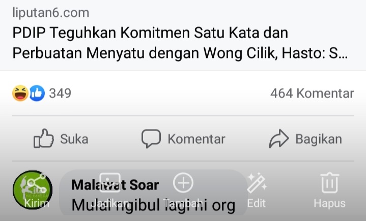 Pernyataan Hasto di Liputan6.com itu dikomentari oleh Malawat dan dibagikan melalui akun Facebooknya dengan kata-kata yang mengejek. Bahkan mantan Kepala Bidang di Dinas Pendidikan Halmahera Timur itu menyebut Hasto mulai ‘ngibul’.