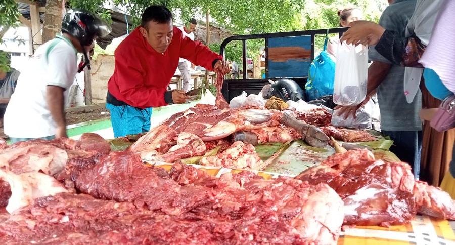 Morotai, Maluku Utara- Harga daging sapi dan daging ayam kampung di sejumlah Pasar Rakyat CDB Morotai jelang Idul Adha tahun 1443 H/2022 M melonjak.