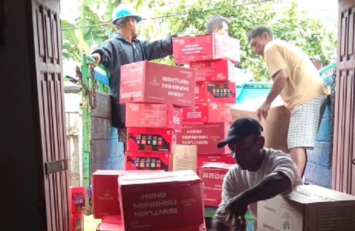 “Bantuan Kemensos RI untuk korban banjir di Sula sudah sampaikan ke Sanana tadi pagi lewat KM. Uki Raya (Sabtu, red). Bantuan yang datang berupa makanan, obat-obatan, pakaian dan keperluan lainnya dan dititipkan melalui Gubernur Maluku Utara. Bantuan yang datang tadi adalah Sandang Dewasa, Kira Ware, Makanan anak-anak, makanan siap saji, matras, selimut, Kasur, paket alat dapur, Food Ware, lauk pauk siap saji dan Tenda gulung,”jelasnya.