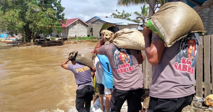 Selain turut membantu warga membersihkan rumah dari genangan air, personil Polres Kepulauan Sula juga turut serta membersihkan area jalan yang tertimbun material banjir termasuk memperbaiki tanggul-tanggul penahan sungai yang jebol dengan peralatan seadanya.