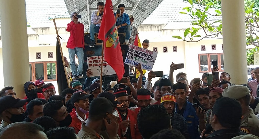Sanana, Maluku Utara- Front Bersama OKP dan Individu Prodemokrasi melakukan aksi unjuk rasa di Kantor Dewan Perwakilan Rakyat Daerah (DPRD) Kepulauan Sula, Selasa (02/8/2022).
