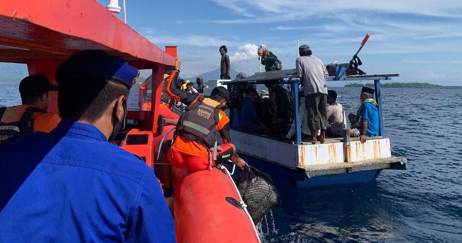 Ternate, Maluku Utara- Tim Rescue Pos SAR Tobelo bersama Polair Tobelo berhasil mengevakuasi longboat yang mengalami patah kemudi di perairan Pulau Tupu-Tupu.