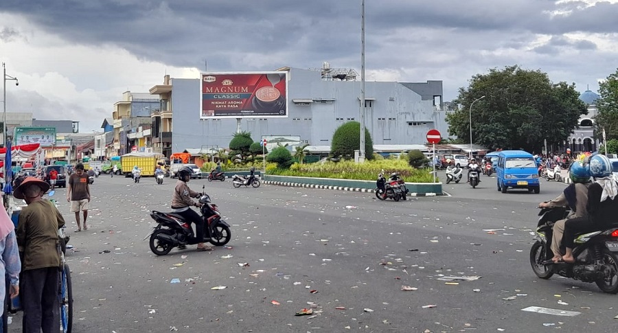 Sampah yang beserakan di jalanan itu setelah Pemerintah Kota Ternate menggelar karnaval tingkat Pendidikan Anak Usia Dini (PAUD) se-Kota Ternate dalam rangkaian kegiatan peringatan HUT RI ke 77.