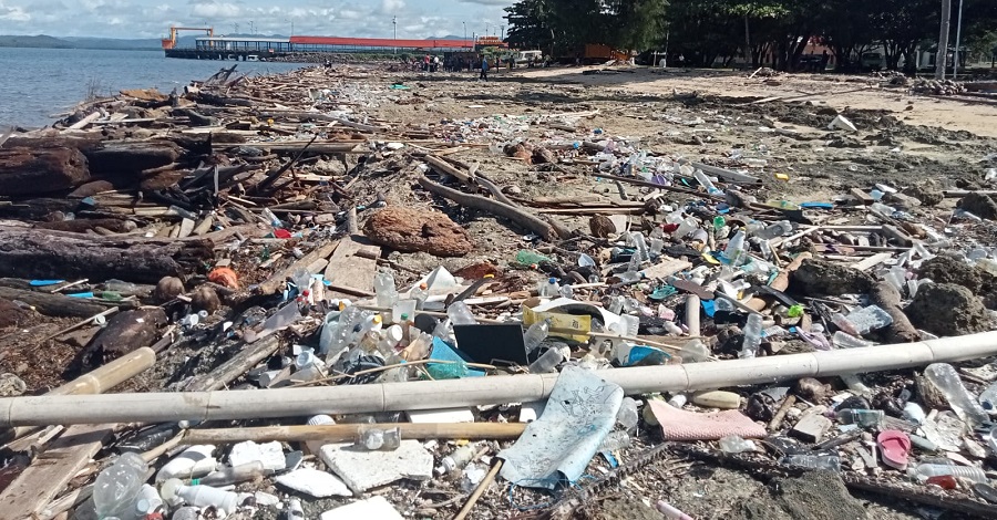 Didepan pangkalan Angkatan Laut yang berjarak kurang lebih 300 meter, terdapat sampah plastik seperti botol air mineral, kemasan plastik makanan siap saji hingga sampah plastik lainnya. Ada juga sampah dari ranting kayu, gelondongan kayu yang sudah lapuk, dan daun-daun kering yang sudah membusuk.