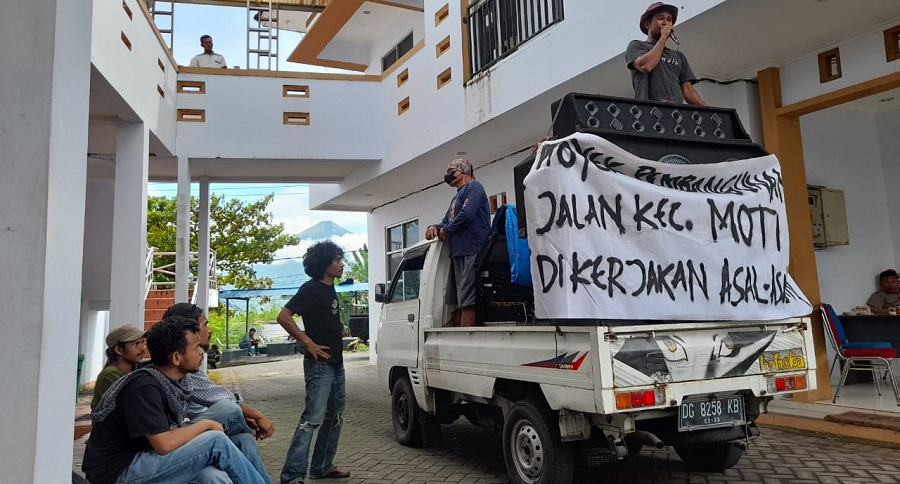 Buntut dari aksi demonstrasi ini lantaran mereka prihatin dengan proyek jalan di Kecamatan Moti yang dikerjakan asal-asalan. Diketahui, proyek ini dikerjakan oleh CV. Fikram Putra dengan nilai kontrak sebesar Rp 2.285.204.535,75, tipe teleford.