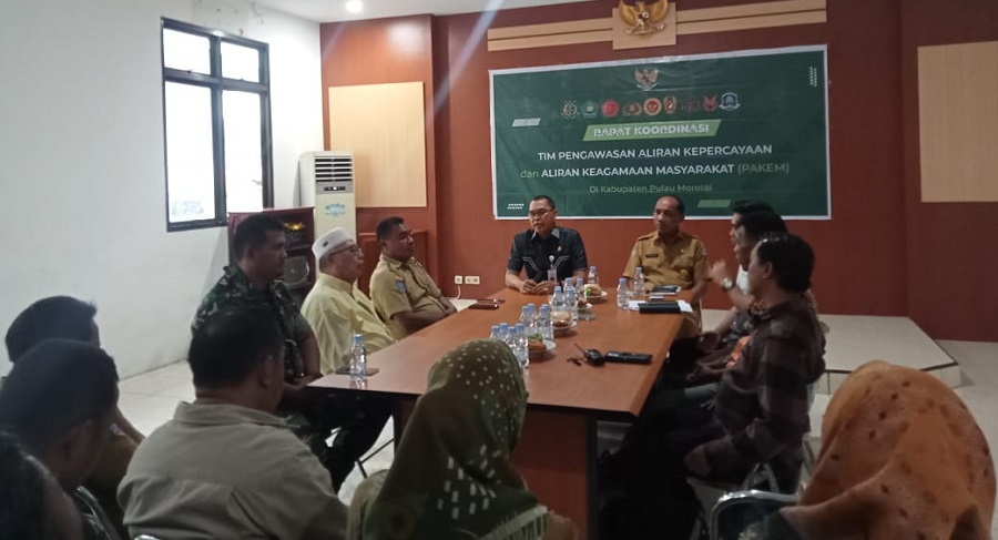 Rapat koordinasi ini terkait upaya pembinaan ketentraman kehidupan beragama dan kepercayaan terhadap Tuhan Yang Maha Esa di Kabupaten Pulau Morotai.