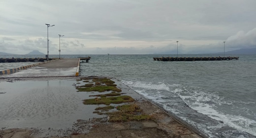 Sofifi, Maluku Utara- Dermaga pelabuhan Pelni Sofifi, Kota Tidore Kepulauan (Tikep), Provinsi Maluku Utara putus di terjang ombak.