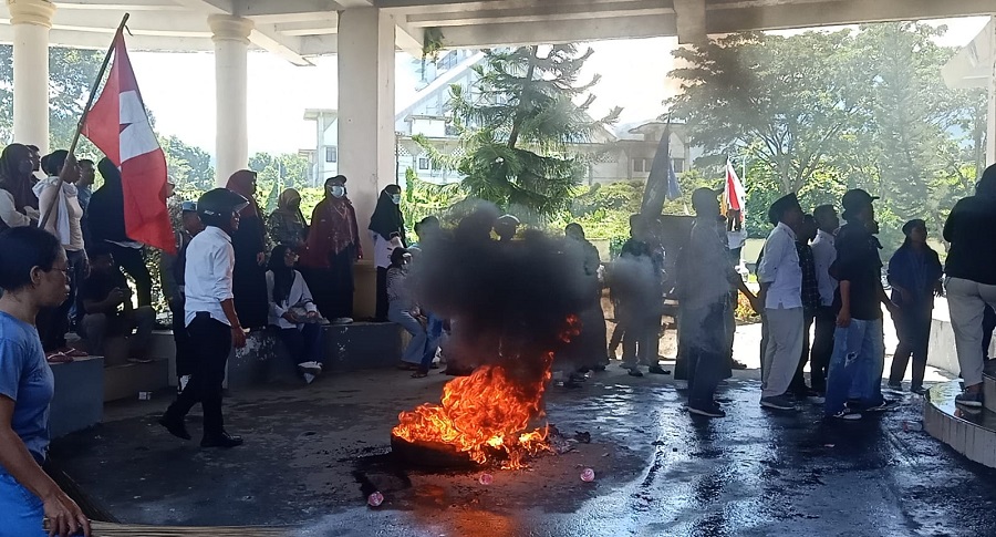 Halsel, Maluku Utara– Aksi demonstrasi pada Senin (16/1/2023), terkait hasil sengketa Pilkades di Halmahera Selatan (Halsel) yang digelar organisasi kemahasiswaan di kantor Dinas Pemberdayaan Masyarakat Desa (DPMD), Kantor DPRD dan kantor sementara Bupati Halsel di Desa Papalong, Kecamatan Bacan, bukan hanya membakar ban bekas tetapi sejumlah fasilitas daerah dirusaki para pendemo.