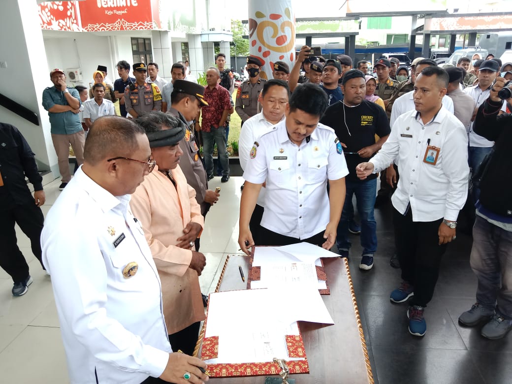 Sementara Abdul Kadir Sadik selaku Fanyira Soa Tomajiko mewakili masyarakat Kecamatan Pulau Hiri, bertindak atas nama Aliansi Masyarakat Pulau Hiri yang menandatangani kesepakatan dimaksud.