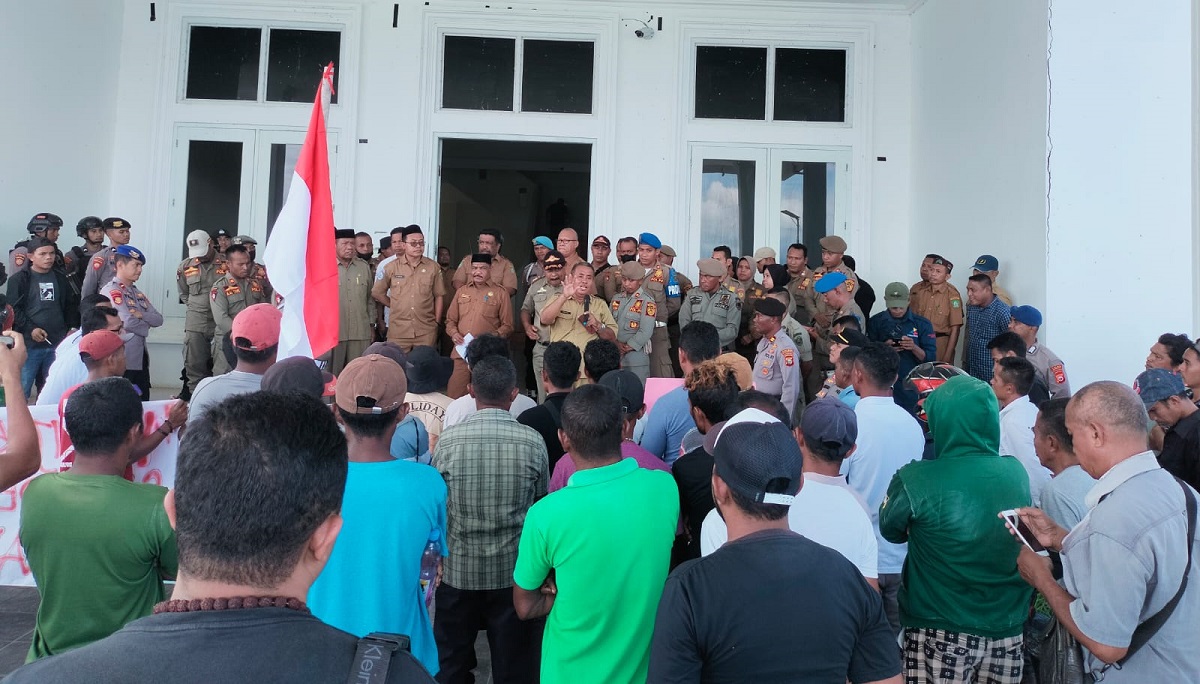 Sanana, Maluku Utara- Puluhan nelayan di Kabupaten Kepulauan Sula, Provinsi Maluku Utara (Malut), pada Senin (6/2/2023), menggeruduk Kantor Bupati setempat.