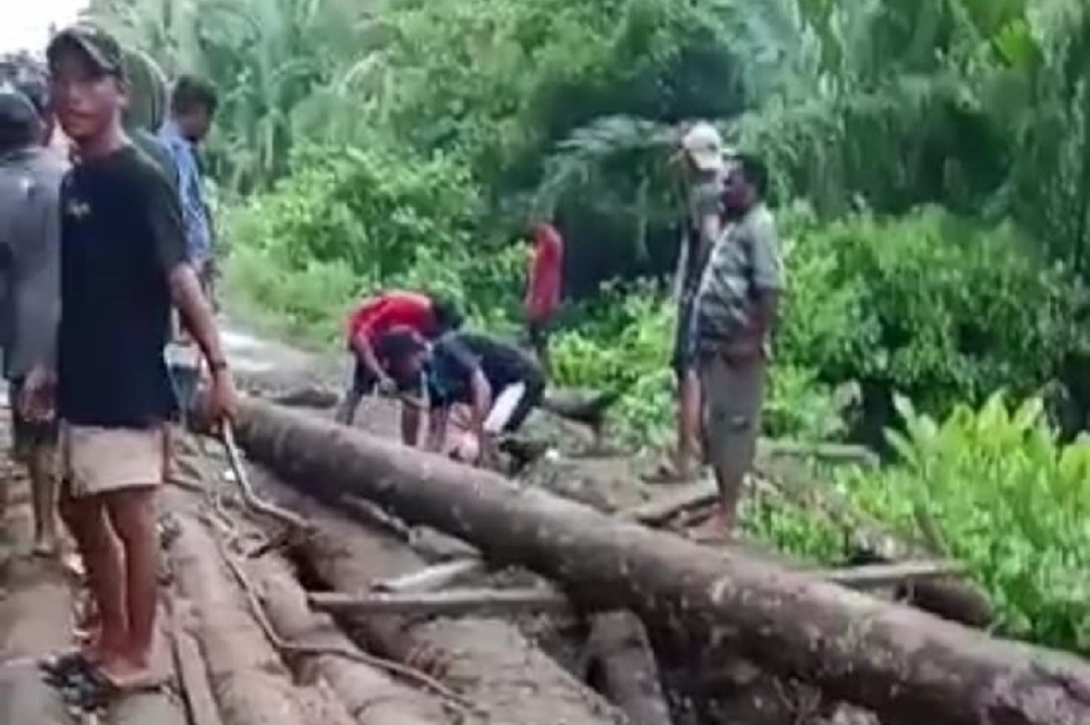 Tidore, Maluku Utara- Satu Duiker di Desa Sigela Kecamatan Oba, Kota Tidore Kepulauan ambruk pada Minggu (26/2/22023). Akibatnya, sejumlah pengendara baik roda empat dan dua dari rute Kecamatan Oba ke Oba Selatan dan sebaliknya terpaksa mengantri.