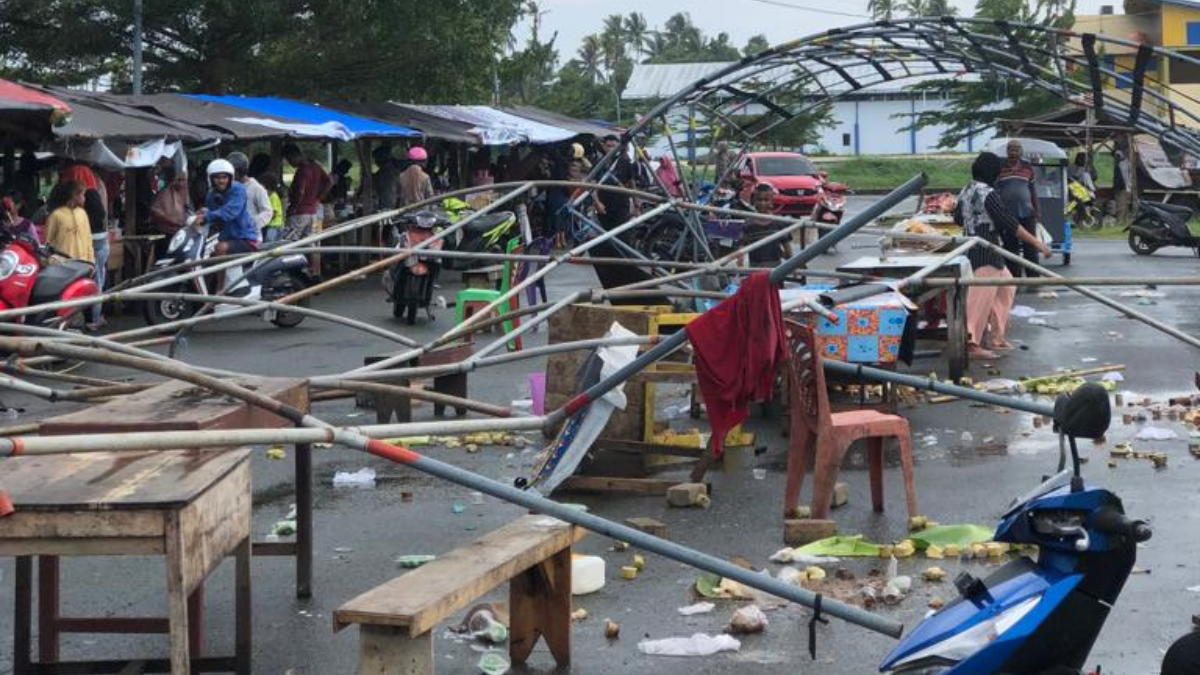 Isabela, salah satu penjual kue kepada Haliyora.id mengatakan, angin kencang dan hujan deras sekitar membuat tenti terbongkar. “Jualan kami juga ikut berhamburan,” ungkapnya.