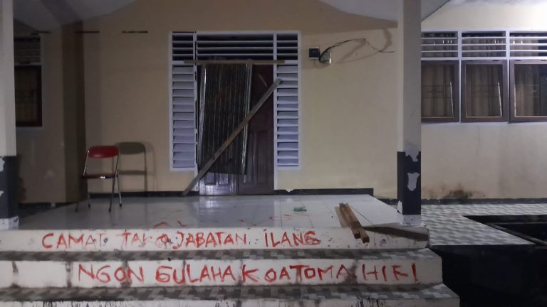 Ternate, Maluku Utara- Aliansi Masyarakat Pulau Hiri (AMPUH) memboikot Kantor Camat Hiri Kota Ternate, Senin (13/06/2023).